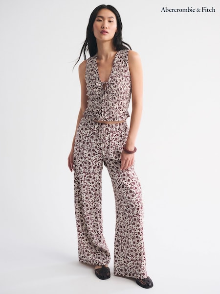 Abercrombie & Fitch Cream Crinkle Pull-On Trousers