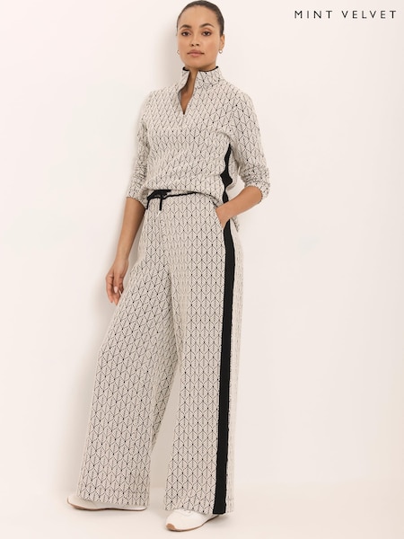 Mint Velvet Blue Scallop Striped Wide Trousers
