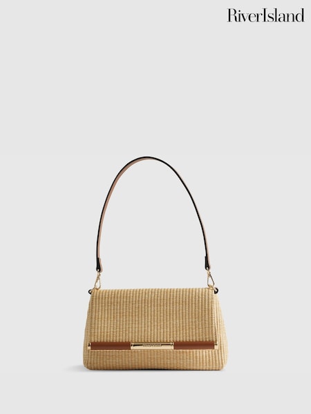 Reiss Natural Gia Raffia-Effect Clutch Bag