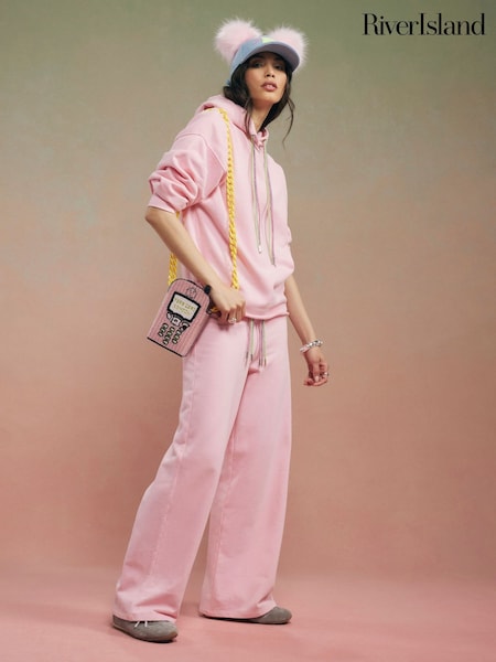 River Island Pink Year Zero Embellished Wide Leg Joggers