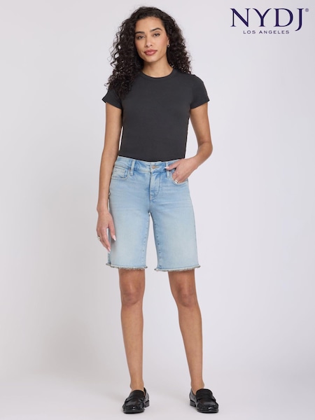 NYDJ Blue Boyfriend Denim Shorts In Re-new™ With Frayed Hems