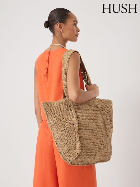 Hush Natural Aster Raffia Panel Tote Bag