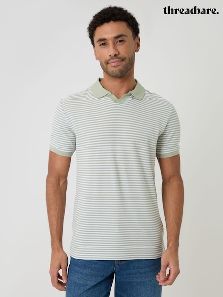 Threadbare Green Stripe Trophy Neck Polo Shirt