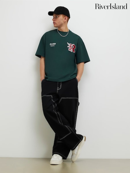 River Island Green Oversized Alpine Badging Crew Neck T-Shirt