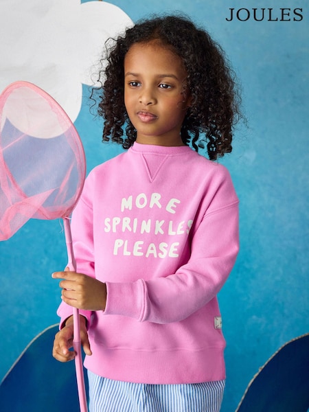 Joules Kids' Sundaze Bright Pink Slogan Crew Neck Sweatshirt