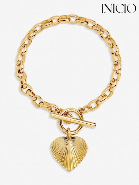 Inicio Gold Tone Diamond Cut Heart T-Bar Bracelet Gift Pouch