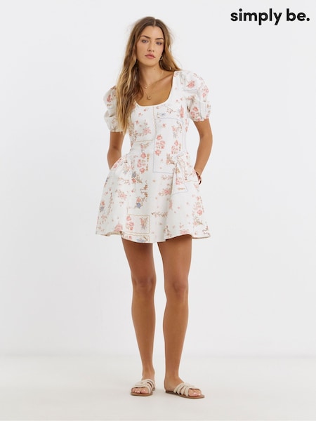 Simply Be White Romantic Print Mini Denim Dress