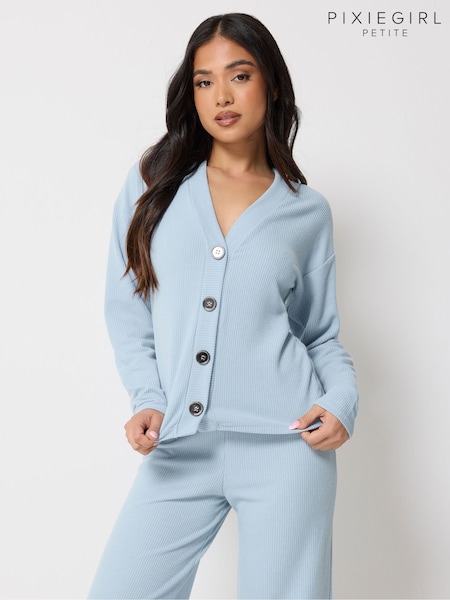 PixieGirl Petite Blue Textured Long Sleeve Button Cardigan