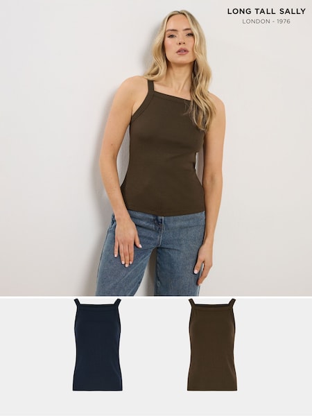 Long Tall Sally Brown High Neck Ribbed Vest Tops 2 Pack