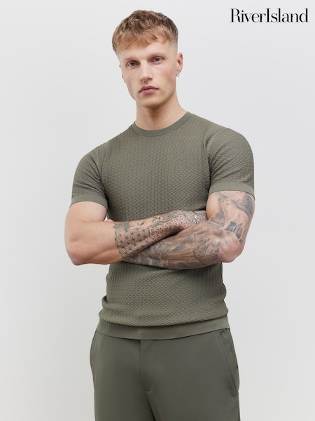 River Island Green Muscle Fit Texture Muscle T-Shirt
