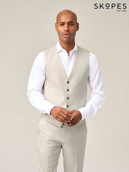 Charles Tyrwhitt Cream Adjustable Fit Morning V2 Suit: Waistcoat