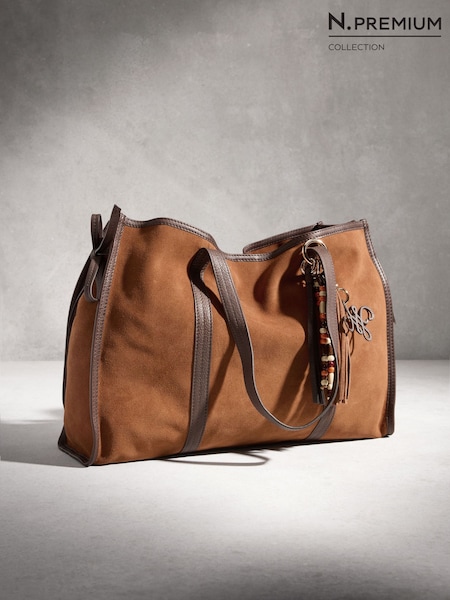 Tan Brown N.Premium Oversized Suede Shoulder Bag
