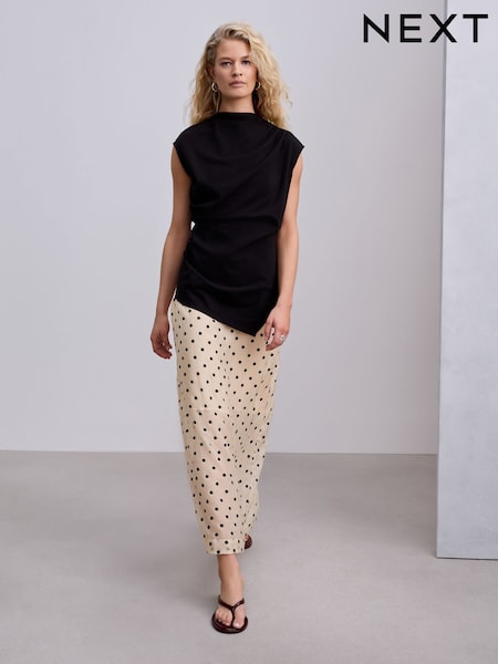 Black/White Polka Dot 2 in 1 Sheer Skirt Midi Dress
